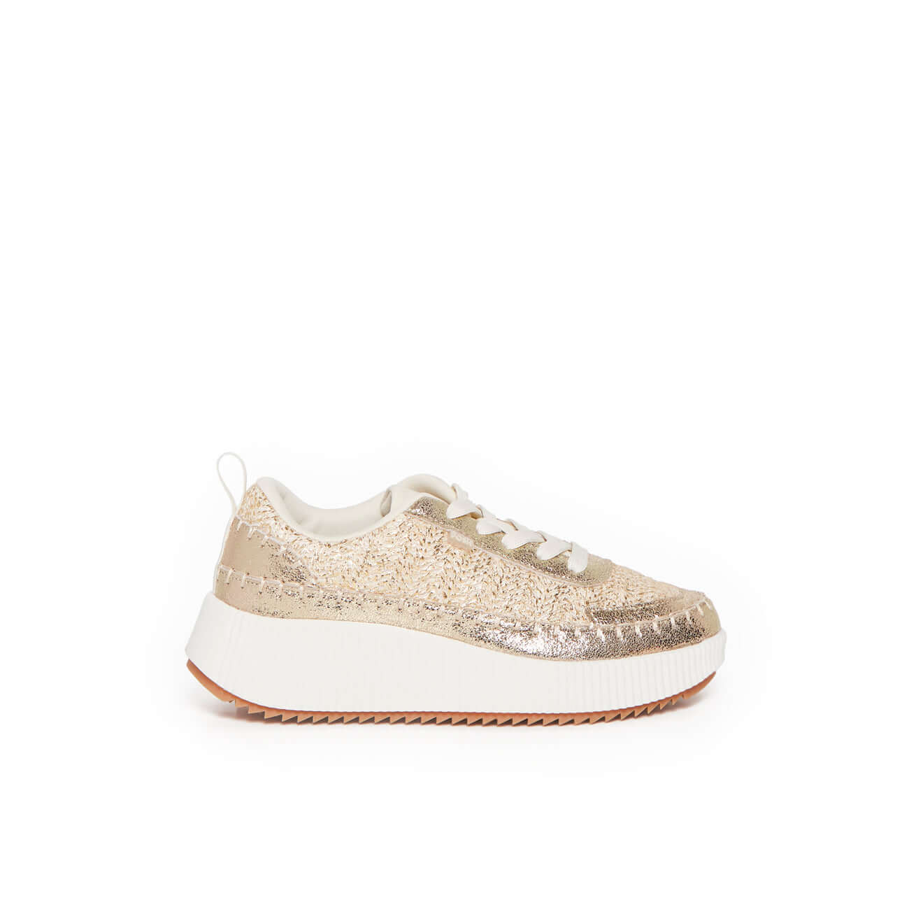 Adoptez l’allure éclatante avec cette basket dorée à plateforme, véritable bijou de votre dressing cette saison ! Son design scintillant capte la lumière à chaque pas, tandis que sa semelle épaisse apporte une touche résolument moderne et confortable. Idéale pour twister vos looks quotidiens, cette basket combine style affirmé et aisance parfaite. Un must-have pour les amatrices de mode qui aiment briller avec élégance !
