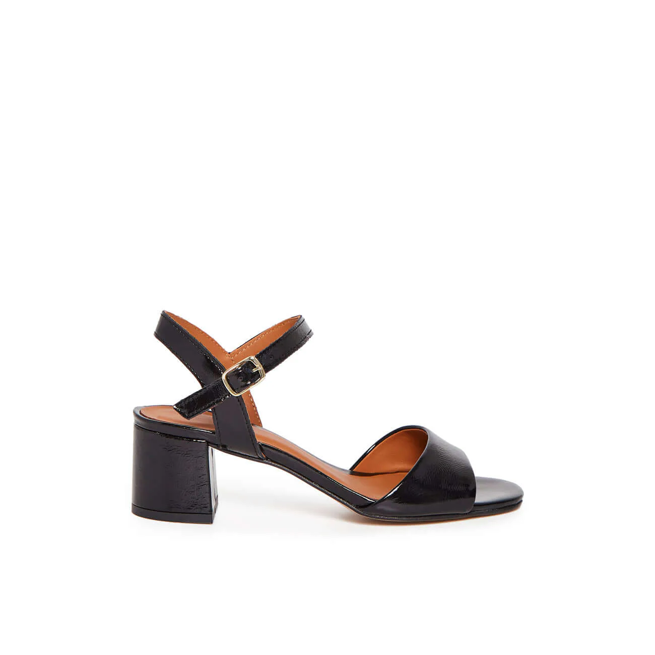 Misez sur la brillance discrĂšte et lâĂ©lĂ©gance intemporelle avec GALILĂE, la sandale Ă talon en cuir verni noir, fabriquĂ©e avec soin au Portugal. IdĂ©ale pour sublimer vos tenues estivales, cette sandale allie confort et raffinement, grĂące Ă son talon bloc stable dâenviron 5 cm et sa bride ajustable Ă la cheville.