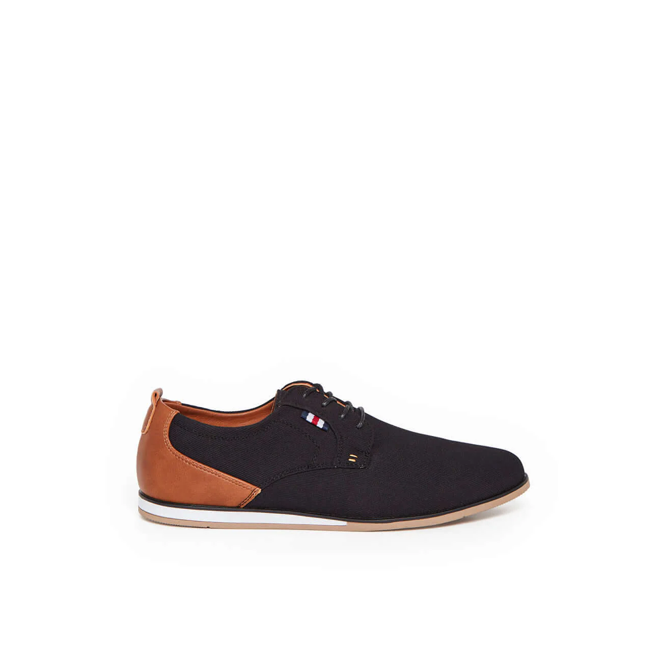 Apportez une touche d'élégance décontractée à votre dressing avec ces chaussures homme au design soigné. Parfaitement équilibrées entre style urbain et confort quotidien, elles associent une empeigne noire en tissu résistant à un empiècement en simili cuir camel au niveau du talon pour un contraste tendance et raffiné.