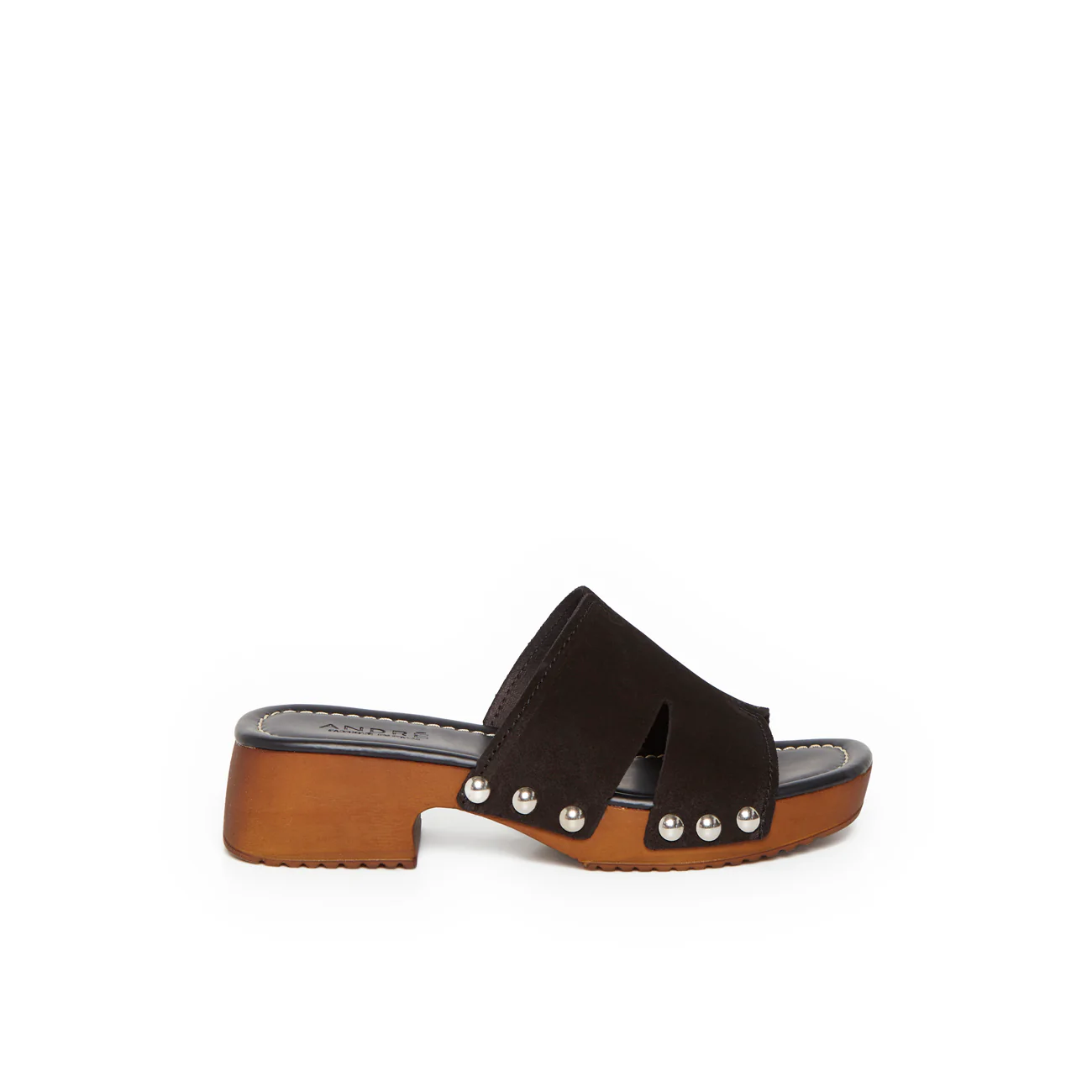 Adoptez un style chic et authentique avec les sabots PERA en cuir noir, une pièce phare de l'été à la croisée du rétro et de la modernité. Leur allure minimaliste sublimée par des clous argentés en fait une sandale idéale pour accompagner aussi bien vos looks urbains que vos escapades estivales. Leur semelle boisée et leur design ergonomique Made in Italie vous assurent un confort naturel et une touche vintage irrésistible. À porter avec un jean flare ou une robe longue pour une silhouette dans l’air du temps.